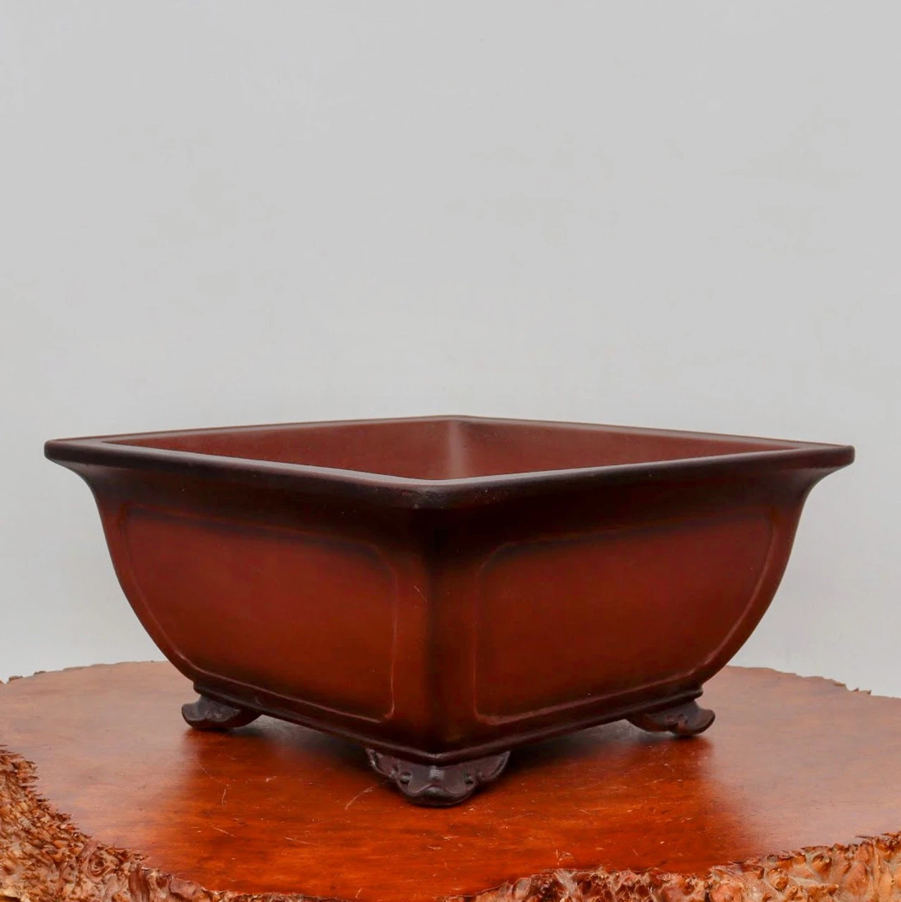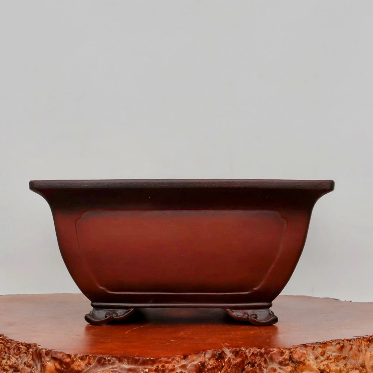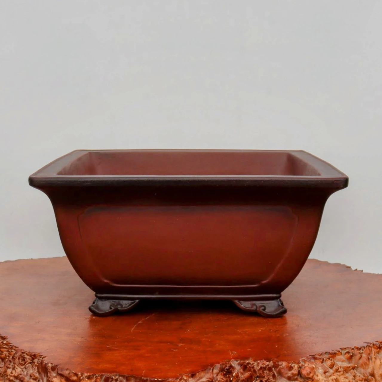 From the โYiXingโ area of China’s Jiangsu Province , widely considered the pottery capital of the China, these pots are simple, elegant, and shaped by hand. In fact, you’ll find the craftsman’s mark on the bottom of every pot. And each pot is made from the purple clay found near the Yangtze River, the best material there is for bonsai pots.