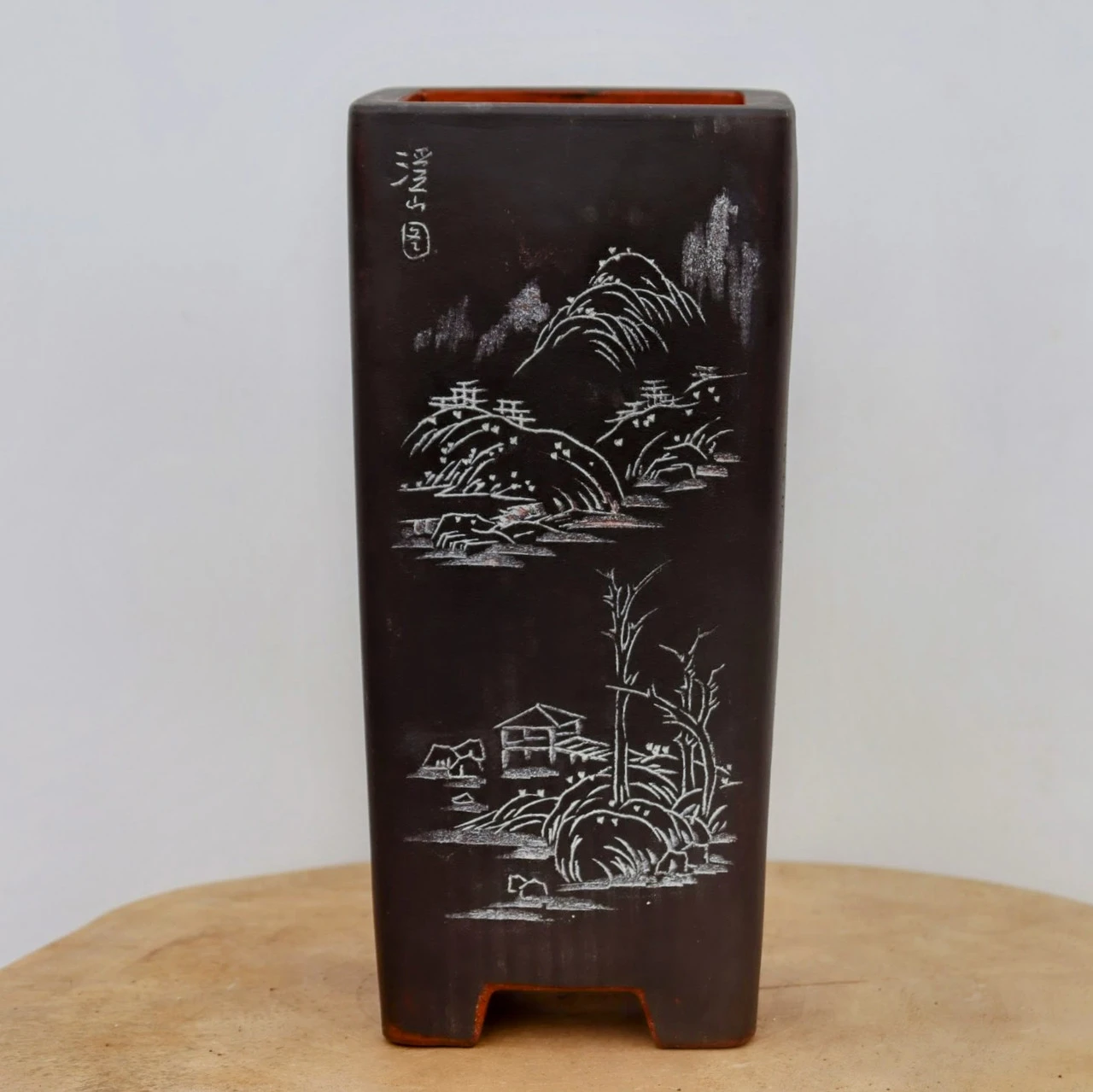 From the โYiXingโ area of China’s Jiangsu Province , widely considered the pottery capital of the China, these pots are simple, elegant, and shaped by hand. In fact, you’ll find the craftsman’s mark on the bottom of every pot. And each pot is made from the purple clay found near the Yangtze River, the best material there is for bonsai pots.