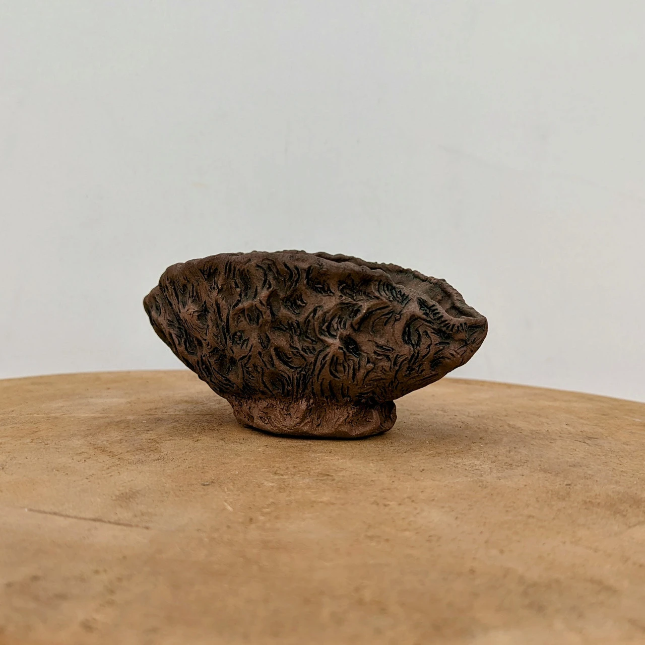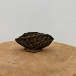 Her focus on showcasing the raw earthenware skin of the clay encapsulates her vision of highlighting the elemental connection between bonsai, pot, and the natural world. As an artist, Moe finds motivation in the organic shapes and flows of nature and water. Her nontraditional approach gives bonsai enthusiasts the chance to showcase their trees with her signature earthy style.