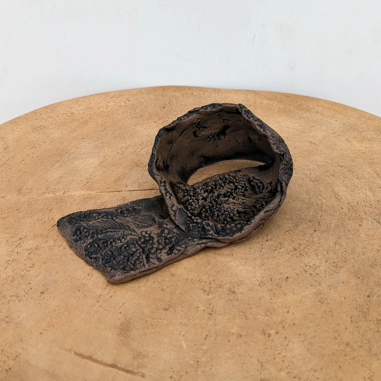 Her focus on showcasing the raw earthenware skin of the clay encapsulates her vision of highlighting the elemental connection between bonsai, pot, and the natural world. As an artist, Moe finds motivation in the organic shapes and flows of nature and water. Her nontraditional approach gives bonsai enthusiasts the chance to showcase their trees with her signature earthy style.