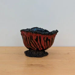 Her focus on showcasing the raw earthenware skin of the clay encapsulates her vision of highlighting the elemental connection between bonsai, pot, and the natural world. As an artist, Moe finds motivation in the organic shapes and flows of nature and water. Her nontraditional approach gives bonsai enthusiasts the chance to showcase their trees with her signature earthy style.