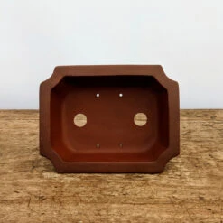From the โYiXingโ area of China ‘s Jiangsu Province , widely considered the pottery capital of the China , these pots are simple, elegant, and shaped by hand. In fact, you’ll find the craftsman’s mark on the bottom of every pot. And each pot is made from the purple clay found near the Yangtze River , the best material there is for bonsai pots.