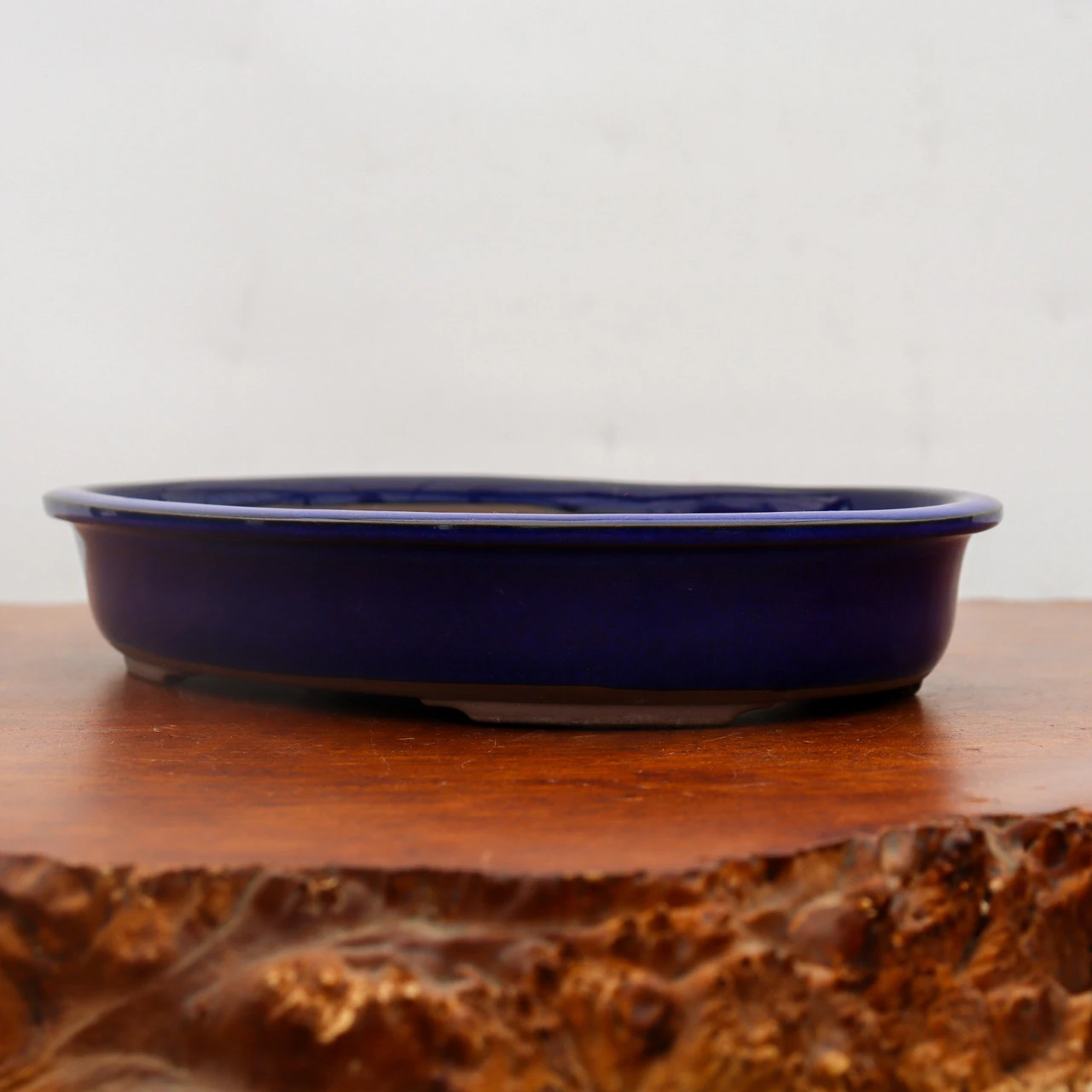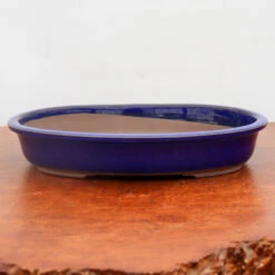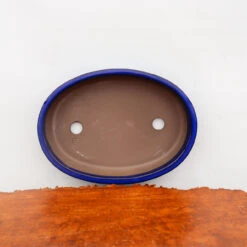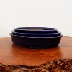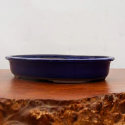 Dark Blue Oval Glazed Japanese Bonsai Pot