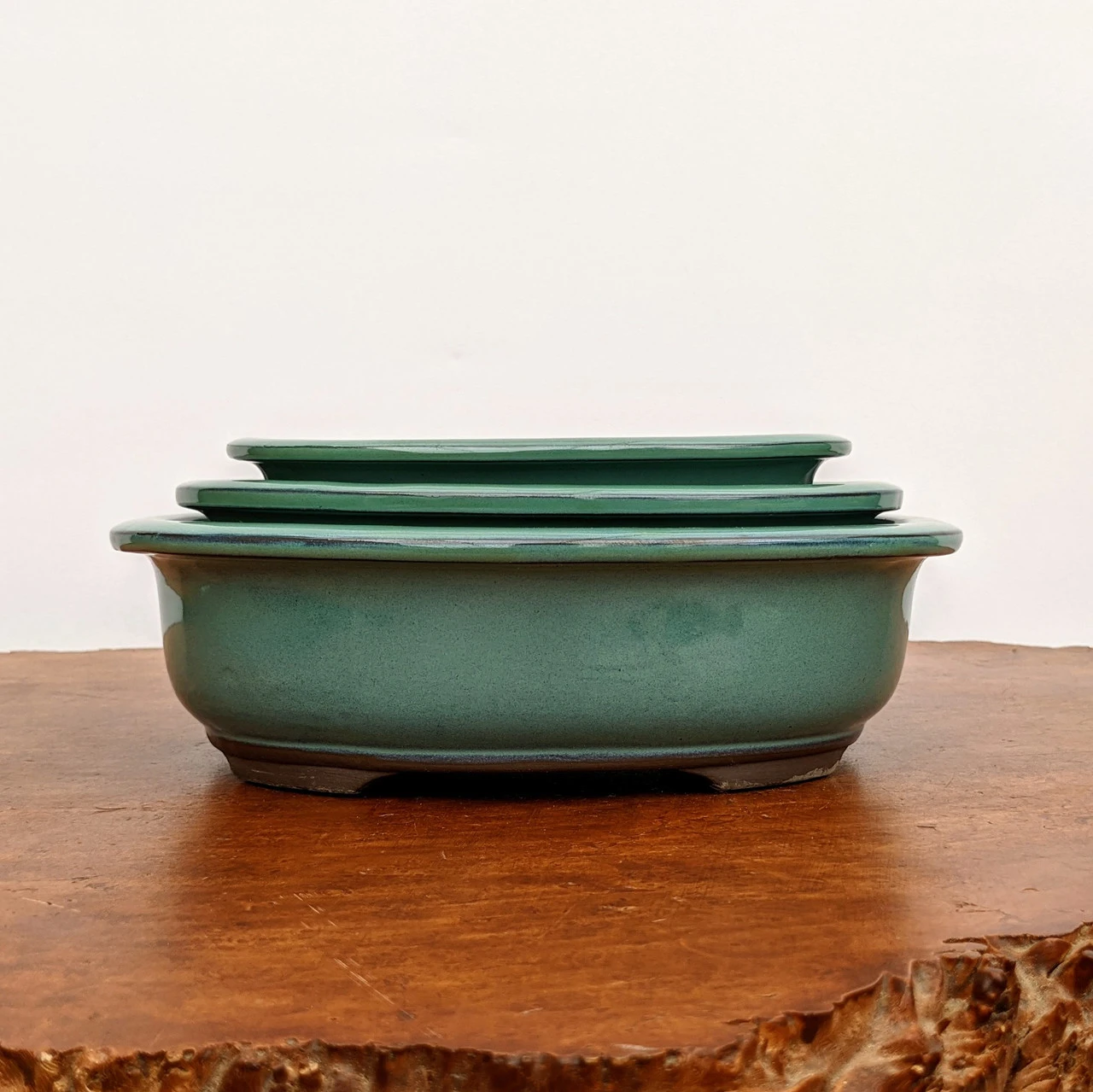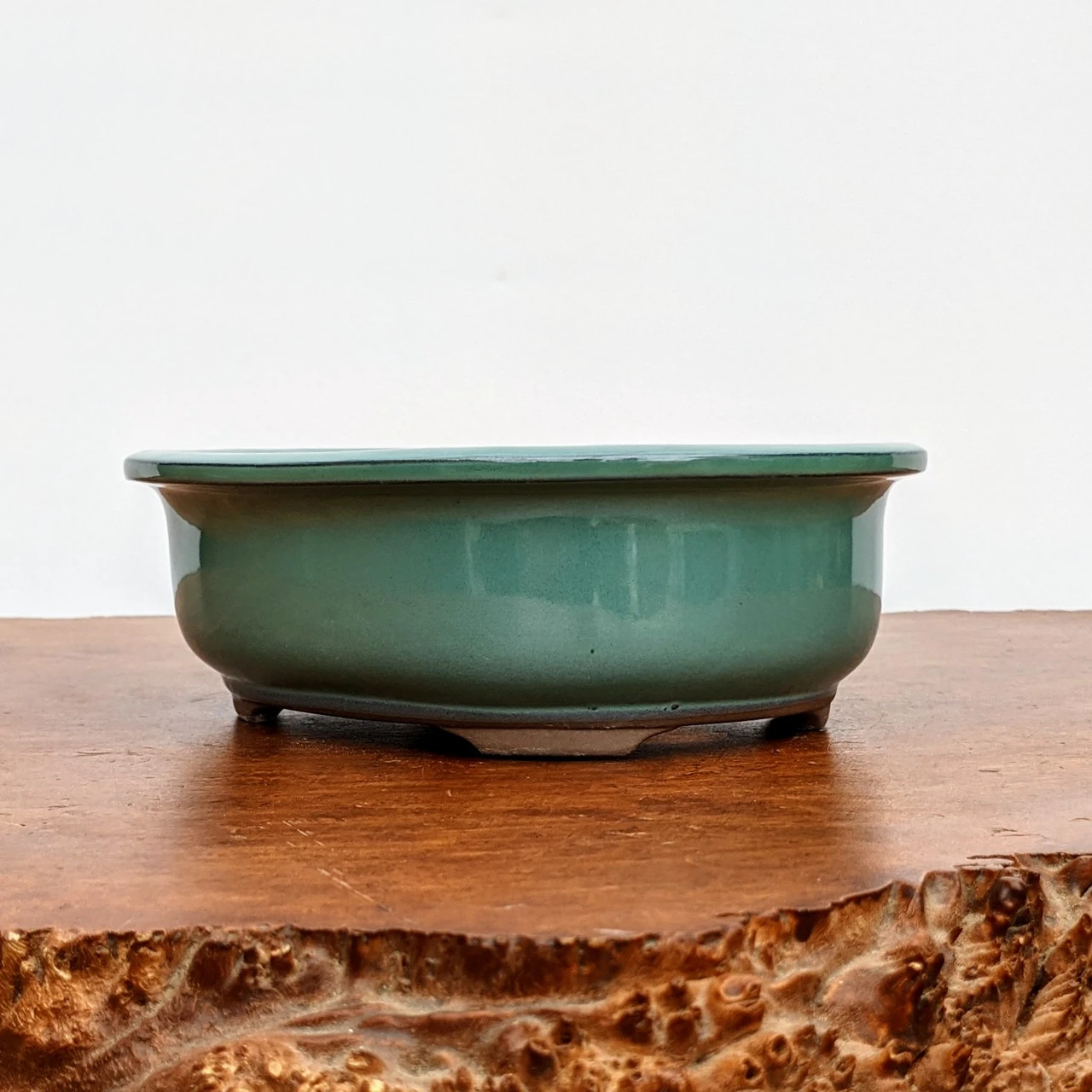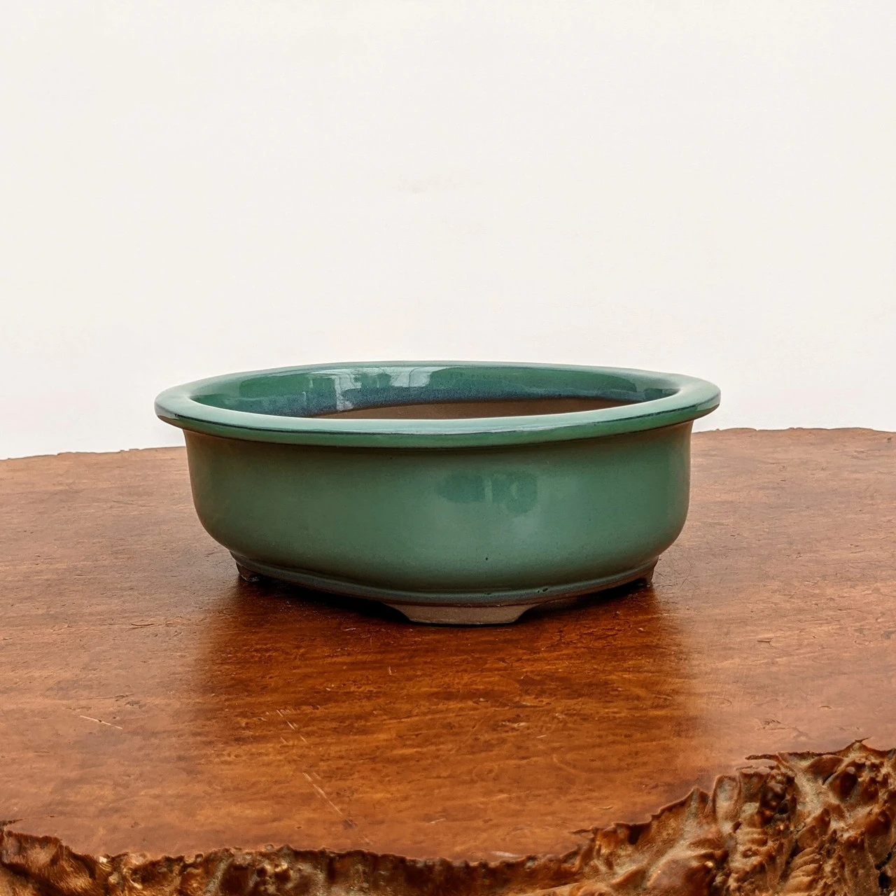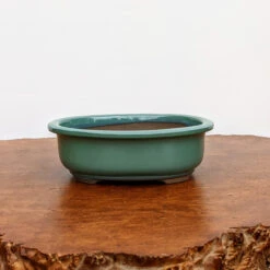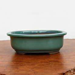 Oval Glazed Bonsai Pot in Green
